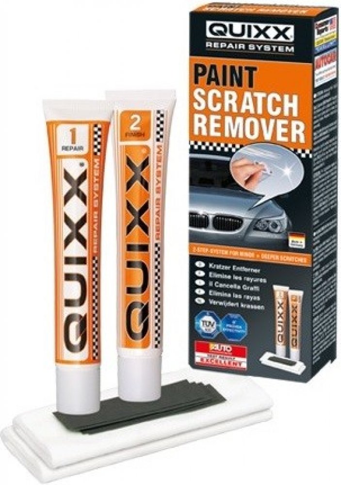 Quixx Vám může v mnoha případech ušetřit peníze za nalakování v servisu. Je jediný odstraňovač škrábanců, se kterým člověk může prokazatelně odstranit už i lehce viditelné škrábance od nehtů. Quixx je proslulý světový vítěz mezi odstraňovači škrábanců. Zvláštní PD technologie (plastic deformation technology) se stará o trvanlivé odstranění škrábanců. Škrábance se již znovu neobjeví ani po mnohačetném umytí vozidla. S Quixxem můžete také opticky významně vylepšit různé opravy provedené tužkou na opravu laku, pomáhá udržet hodnotu Vašeho vozidla a ušetřit výdaje za opravy.