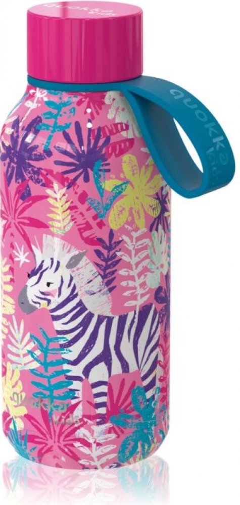 Quokka Solid Kids s popruhem Nerezová termolahev 330 ml s popruhem Zebry