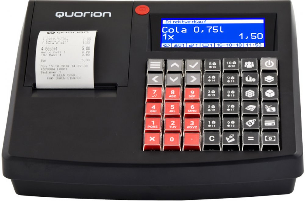 Pokladna serie QMP 60 je moderní flexibilní pomocník pro Vaše podnikání. Nový software pokladen umožňuje dokonalé přizpůsobení pokladny v podstatě jakémukoliv požadavku zákazníka. Za velmi příznivou cenu získáte pokladnu s nadstandardními funkcemi.Klíčové vlastnostijednoduchá obsluhavelký a přehledný displej obsluhysnadné programování novým softwarem Quorion QSCintegrovaná termotiskárna se snadným vkládáním papíruvolitelné finanční zprávy, zprávy obsluhyelektronický journalprogramovatelné přirážky a slevyoprava chyby, storno, refundaceplně programovatelná klávesnicekopie účtu, možnost vypnutí tisku účtugrafické logocizí měny, automatický přepočettréninkový mód, přihlašování obsluh pomocí kódutřídění až 55000 PLU do 999 skupin a oddělenícenové hladinyautomatické zálohováníprogramování přes LAN rozhraníuzavřený operační systém QMP, nemusíte se obávat virů ani jiných hrozebmožnost připojení čtečky čárových kódů, obchodní váhy, zákaznického displeje a pokladní zásuvkymožnost rozšíření paměti o USB flash diskDisplej zákazníka:LCD grafický 192x32 pixelůNapojení na skladový software: nePřipojení na internet: anoČtečka karet: lze připojit USB Flash disk Porty:1x RS-232(RJ-45), 2x USB (1x USB-A, 1x USB-B), 1x LAN (RJ-45), 1x zásuvka (RJ-11 - 9V)Displej obsluhy: LCD grafický 192x64 pixelůZáruka: 24 měs.Výrobce: QuorionElektronická evidence tržeb: EET lze dokoupitProdej více subjektů: V ceněPokladní zásuvka: Lze dokoupit zásuvku dle výběruKlávesnice: 42 klávesOperační systém: QMPPřipojení čtečky čárových kódů: anoPřipojení tiskárny do kuchyně: anoPřipojení váhy: anoIntegrovaná baterie: ne