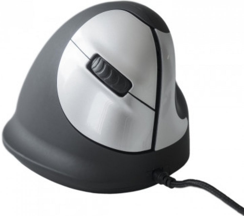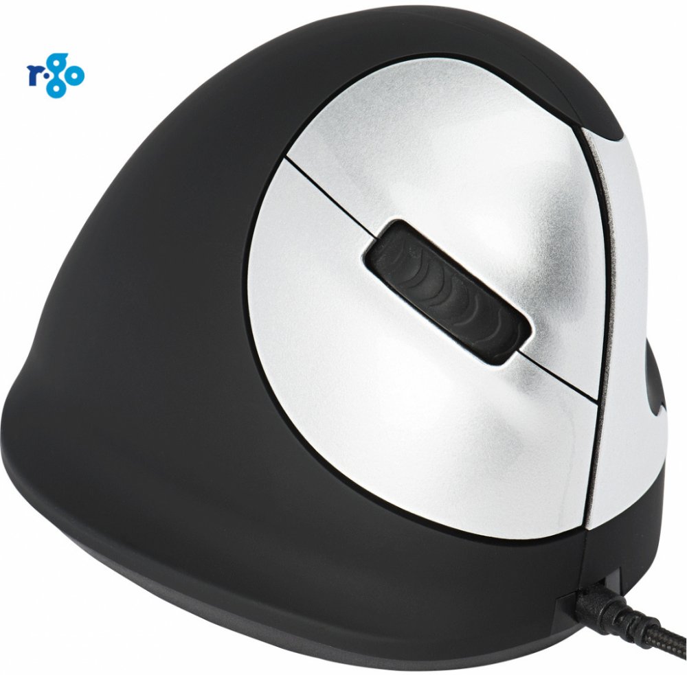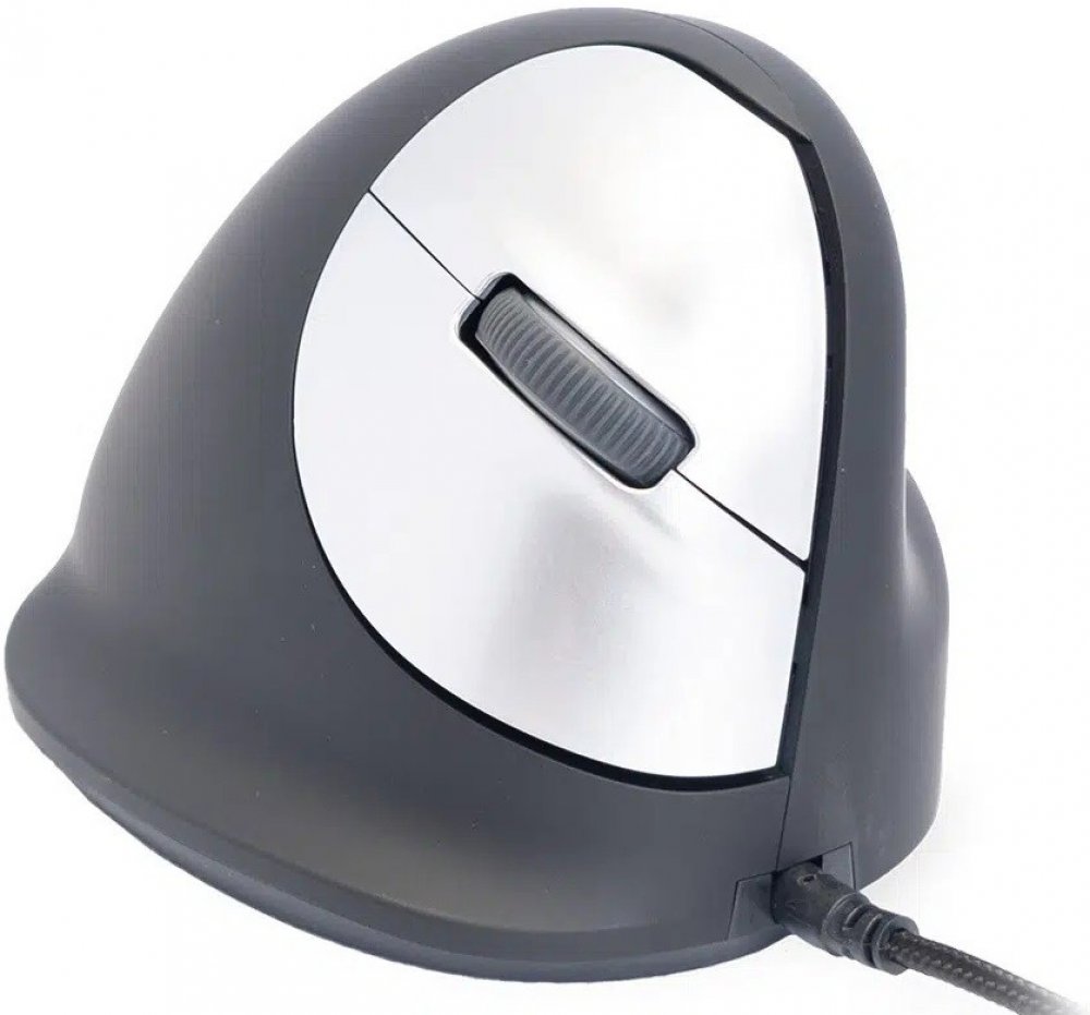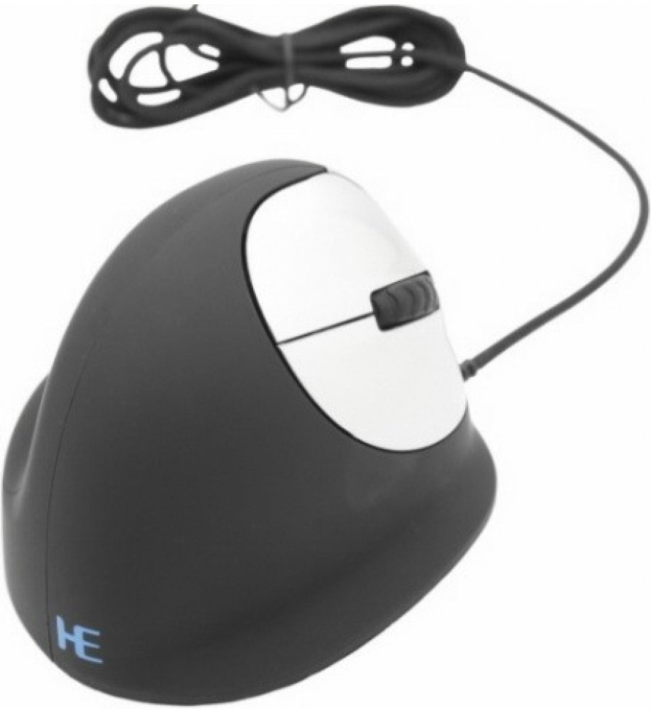 Vertikální drátová pravoruká myš HE Mouse má 5 tlačítek včetně rolovacího kolečka. Levé a pravé tlačítko myši jsou ovládány ukazováčkem a prostředníčkem. Rolovací kolečko lze použít pro navigaci a může být ovládáno ukazováčkem nebo prostředníčkem. Palec ovládá tlačítka vpřed a vzad.
