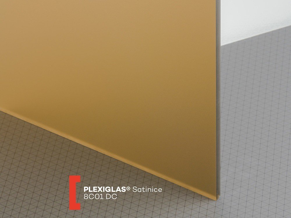 8C01 DC je hnědé průsvitné oboustranně pískované plexisklo značky Plexiglas SATINICE v tloušťce 6 mm s propustností světla cca 16%. Desky jsou určené mj. pro nasvětlení s optimálním rozptylem světla. Materiál je UV-nepropustný, vysoce odolný proti UV záření a povětrnostním vlivům, poskytujeme 10-letou záruku na stálost fyzikálních vlastností. Obě povrchové strany těchto desek z plexiskla jsou kryty ochrannou folií. Široké použití v reklamě, nábytkářství, designu... K tomuto typu desek dodáváme speciální lepidlo Acrifix 195, které po zaschnutí není lesklé, ale vytváří dojem opískování.