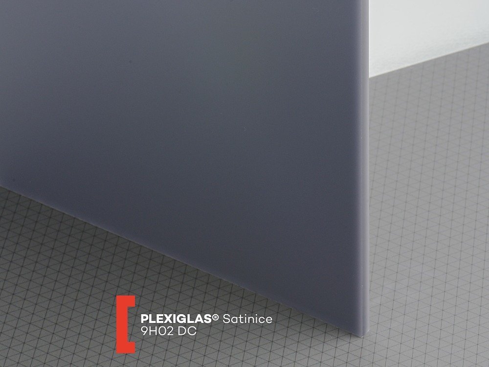 9H02 DC je grafitově šedé průsvitné oboustranně pískované plexisklo značky Plexiglas SATINICE v tloušťce 6 mm s propustností světla cca 1%. Desky jsou určené mj. pro nasvětlení s optimálním rozptylem světla. Materiál je UV-nepropustný, vysoce odolný proti UV záření a povětrnostním vlivům, poskytujeme 10-letou záruku na stálost fyzikálních vlastností. Obě povrchové strany těchto desek z plexiskla jsou kryty ochrannou folií. Široké použití v reklamě, nábytkářství, designu... K tomuto typu desek dodáváme speciální lepidlo Acrifix 195, které po zaschnutí není lesklé, ale vytváří dojem opískování.