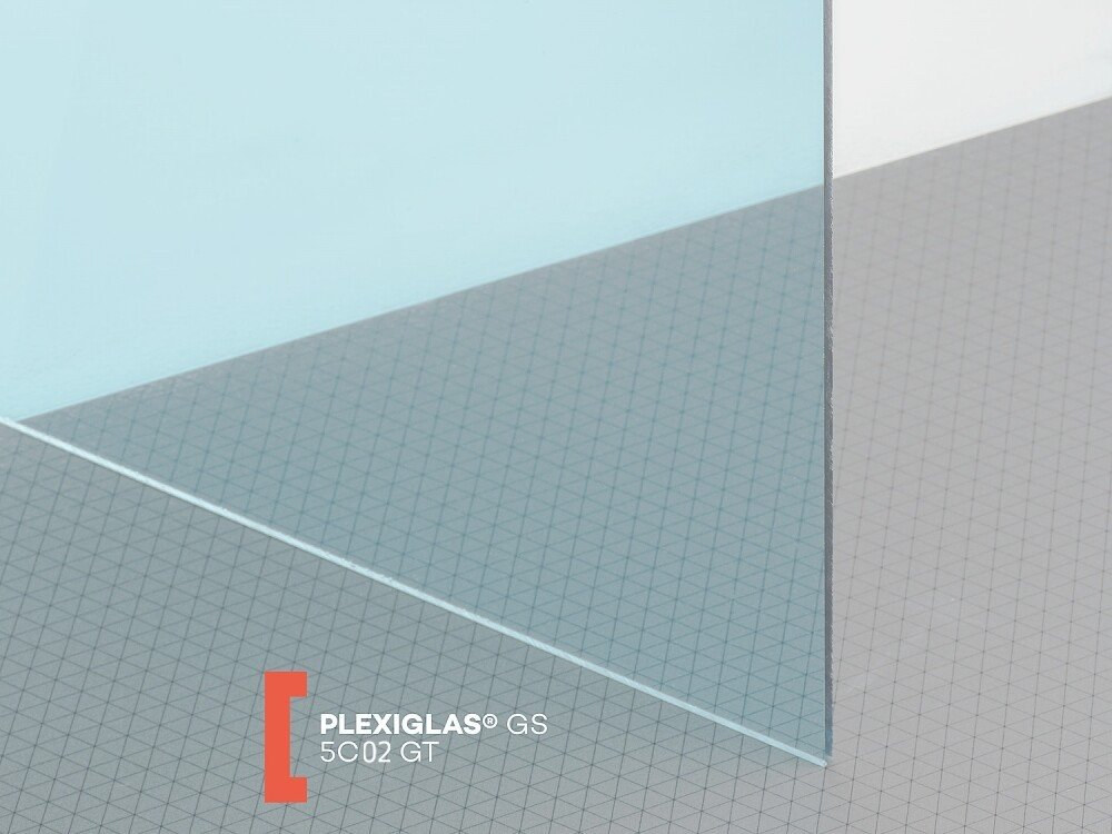 Lité modré plexisklo tl. 3 mm s označením 5C02, tloušťkou 3 mm (propustnost světla výrobce neuvádí). Jedná se o velmi kvalitní druh plexiskla, materiál je vysoce odolný proti UV záření a povětrnostním vlivům. Obě povrchové strany těchto desek z plexiskla jsou hladké a vysoce lesklé, dodávané s ochrannou folií. Široké použití v reklamě, stavebnictví a průmyslu. Výroba litím znamená, že materiál se naleje mezi dvě skleněné desky a v peci postupně chládne. Tímto získává menší vnitřní pnutí, avšak větší tloušťkovou toleranci než extrudované plexisklo.