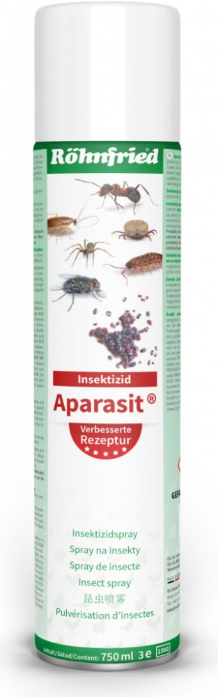 Aparasit Spray je antiparazitický aerosolový roztok určený k boji proti červům. Bojuje proti roztočům, klíšťatům, vši, blechám a dalším červům rychle a efektivně. Díky jednoduchému použití je ideální pro hnízdní účely a pro vybavení umístěné v podkroví.