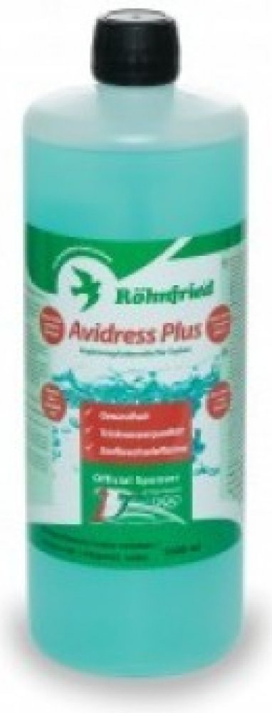 Přísada do krmiva na bázi stabilizátorů pH, kombinace kyselin a funkčních příchutí Herba-San Formel. Stimuluje zdraví a imunitu tím, že snižuje množství choroboplodných zárodků ve vodě a slinách. Tekutý doplněk stravy pro poštovní holuby a další domácí zvířata má silný účinek na patogenní choroboplodné zárodky jako je e. coli, salmonela a streptokoky. Díky kombinaci známých organických kyselin se podařilo snížit hodnotu pH pitné vody a použití esenciálních olejů jako je karvakrol, thymol a dalších léčivých rostlin, jako jsou např. skořice měla aromatické účinky a povzbuzovala chuť k jídlu. Kromě toho holubi rádi pijí vodu s tímto doplňkem, což se u jiných přísad do vody nestává. Mnoho veterinárních lékařů specializujících se na onemocnění holubů potvrzuje blahodárné účinky přípravku Avidress Plus na zdraví poštovních a čistokrevných holubů. Kromě toho tento přípravek působí preventivně proti bakteriím a trichomonadům! U holubů, kteří denně dostávají Avidress Plus, se choroboplodné zárodky vyskytují zřídka ve výtěrech z vůle.