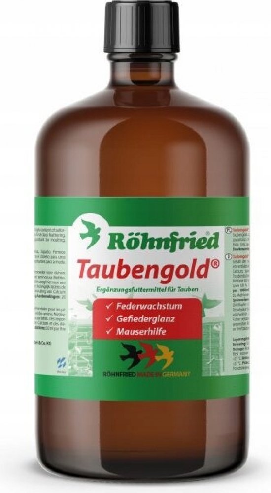 Doporučené podávání: Při prdění 4 uzávěry = 20 ml na 1 litr vody nebo 750 g krmiva (s krmivem promíchejte několik hodin před krmením, aby krmivo dobře nasáklo). Podávání přípravku Taubengold během prdění je obzvláště doporučeno, protože obsažené sírové aminokyseliny umožňují velmi dobré prdění a poskytují vynikající kvalitu nově vzniklých peří. Během chovu a výchovy stačí podávat 5-10 ml na litr vody. Maximálně lze podávat 40 ml na litr vody nebo 750 g krmiva.