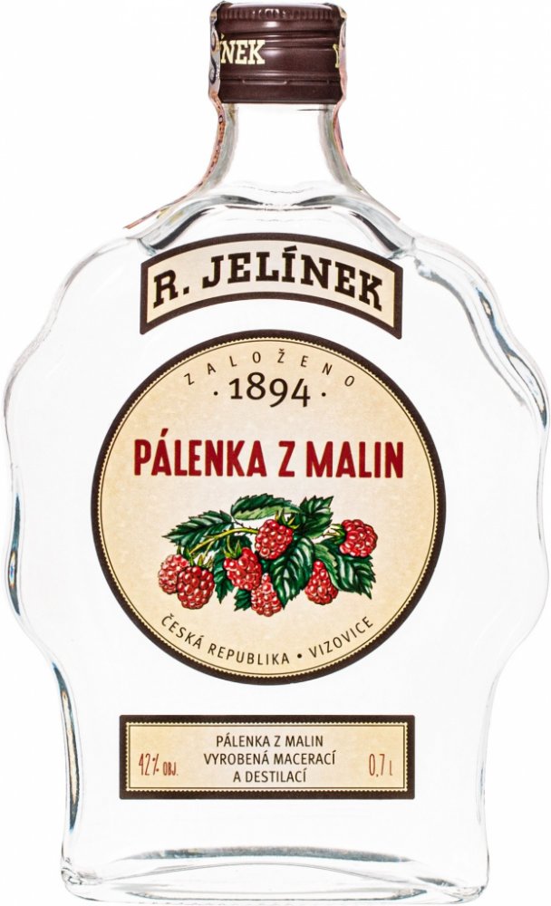 Pálenky jsou ušlechtilé lihoviny, které vznikají pomocí destilace zkvašeného rmutu připraveného z plodů rostlin. Kvalitní pálenka dovede prohřát tělo a oceníte ji i při slavnostním přípitku. Malinovice RUDOLF JELÍNEK vzniká při maximální péči, výjimečnou vůni jí dodávají poměrně vzácně využívané maliny a pro svou sladkou chuť jí jistě neodoláte. Obsah alkoholu u malinovice RUDOLF JELÍNEK činí 42 %, přes tak vysoký podíl alkoholu vás překvapí svou příjemnou jemností. Zemí původu je Česká republika. Klíčové přednosti pálenky Rudolf Jelínek Malinovice 0,7l 42% Silný alkohol s originální chutí a nádhernou vůní Vzácná a nepříliš obvyklá pálenka z malin Pálenka RUDOLF JELÍNEK má obsah alkoholu 42 % V balení získáte 0,7 l malinovice Zemí původu pálenky RUDOLF JELÍNEK je Česká republika