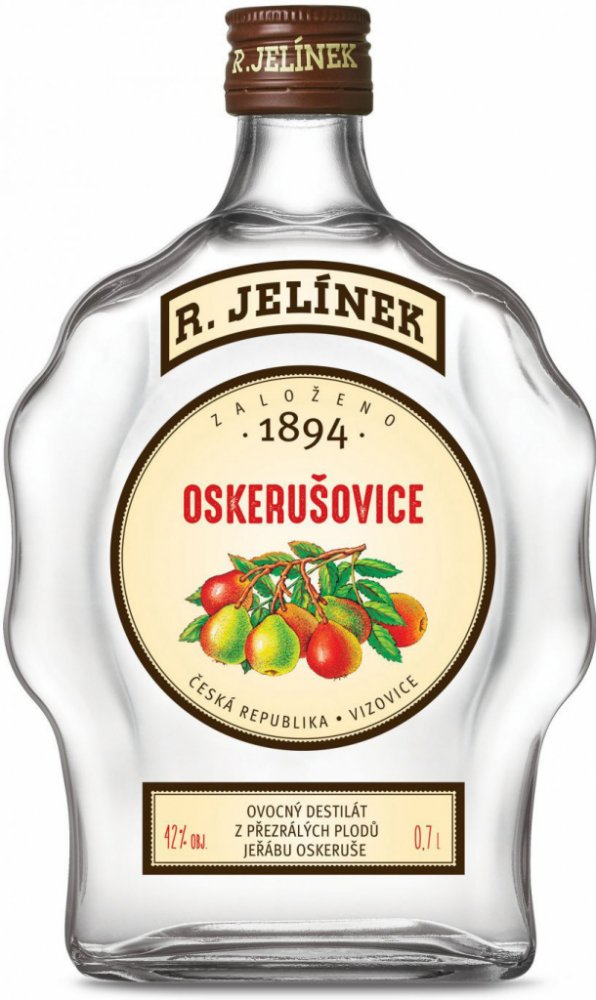 Pálenky se řadí mezi ušlechtilé lihoviny vznikající destilací zkvašeného rmutu, který se připravuje z plodů rostlin. Kvalitní pálenka potěší milovníky tvrdšího alkoholu a skvěle doplní setkání s kamarády či jiná posezení se známými. Oskerušovice RUDOLF JELÍNEK je vyráběna s velkou péčí a patří mezi méně tradiční pálenky s vytříbenou, velmi originální chutí. Hladina alkoholu u oskerušovice RUDOLF JELÍNEK činí 42 %, i tak si tento silný alkohol udržuje svou příjemnou jemnost. Zemí původu je v tomto případě Česká republika. Klíčové vlastnosti pálenky Rudolf Jelínek Oskerušovice 0,7l 42% Silný alkohol s nezaměnitelnou chutí a originální vůní Z výtečného ovoce se vyrábí méně známá oskerušovice Pálenka RUDOLF JELÍNEK má obsah alkoholu ve výši 42 % V balení najdete 0,7 l oskerušovice Zemí původu pálenky RUDOLF JELÍNEK je Česká republika