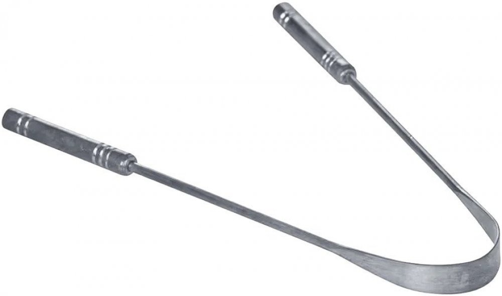 Ocelová škrabka na jazyk má širokou škrábací hranu, která umožňuje seškrábat celý jazyk pouhými 2-3 tahy. Pečlivě navržené tenké a tupé hrany zabraňují možnosti pořezání nebo poranění.