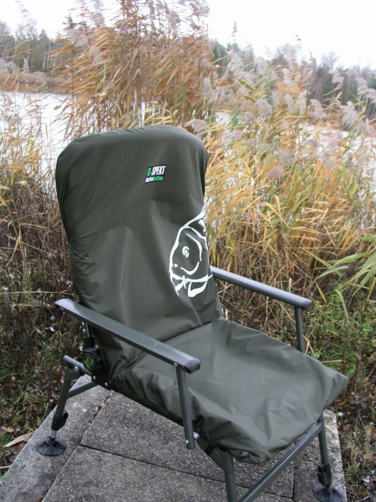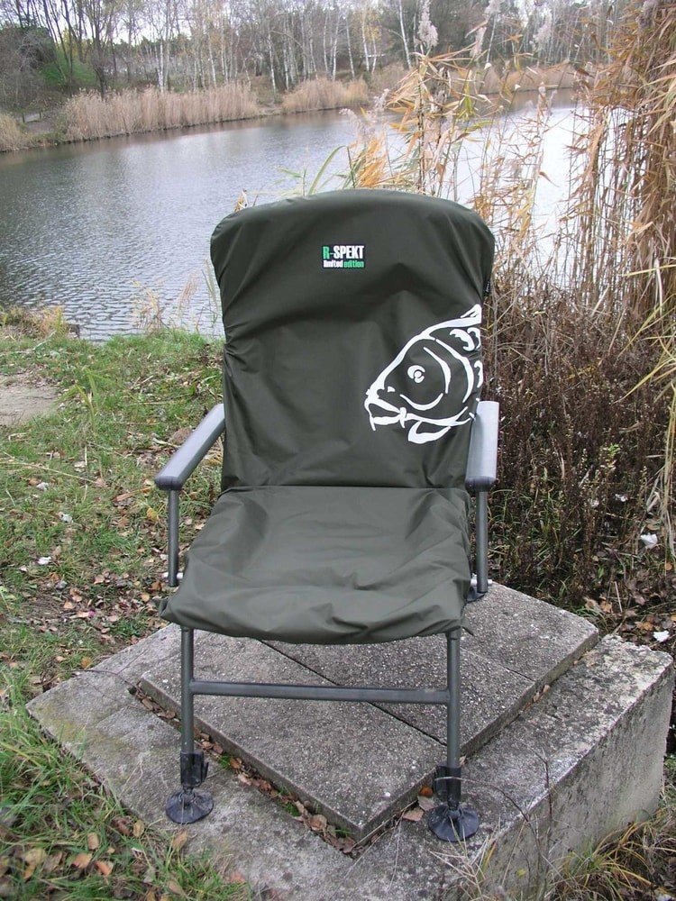 Ochranný univerzální přehoz pro rybářské křesla typu MAXI představuje praktický doplněk pro všechny rybáře Ochranný univerzální přehoz pro rybářské křesla typu MAXI představuje praktický doplněk pro všechny rybáře, kteří rádi využívají u vody pohodlí svého křesílka a to za všech možných klimatických podmínek. Tento přehoz vám pomůže ochránit křesílko před všemi nečistotami, s nimiž se během vaší výpravy setkáte, neboť je vyroben z pevné a voděodolné textilie, která velmi dobře odolává případnému znečištění. Přehoz je nepromokavý, lze jej velmi snadno čistit a prát a bude udržovat vaše křesílko vždy suché a čisté. Tento ochranný přehoz je určen pro větší typy rybářských křesílek a disponuje celkovými rozměry 135 x 75cm (délka sedáku+opěráku x šířka). Nasadíte jej velmi jednoduše jeho natažením na opěradlo křesílka a dále pak přetažením přes spodní sedací část křesla a přetažením gumy přes přední nohy křesla. Přehoz pak můžete ještě zajistit pod sedací částí křesílka v příčném směru spojením pevných gumových pruženek s kovovými háčky. Přehoz je velmi skladný a extrémně lehký, současně však také velmi pevný. Pro jeho uskadnění v době kdy jej nevyužijete je přiložena praktická voděodolná kapsa. Barevné provedení: khaki potah s logem R-SPEKT limited edition Materiálové složení: 100% voděodolný polyamid s PU zátěrem Rozměry potahu: 135 x 75cm (délka sedáku+opěráku x max. šířka) EAN: 8592981002118