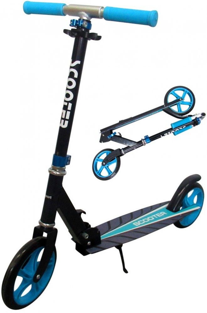 - pevná konstrukce - velká, gumová kola - ložiska kol - nožní brzda - nastavitelná řídítka (4 úrovně) - skládací - protiskluzové rukojeti na řídítkách - hrubé stoupátko (deska) / protiskluzový prvek - vhodná pro děti i dospělé