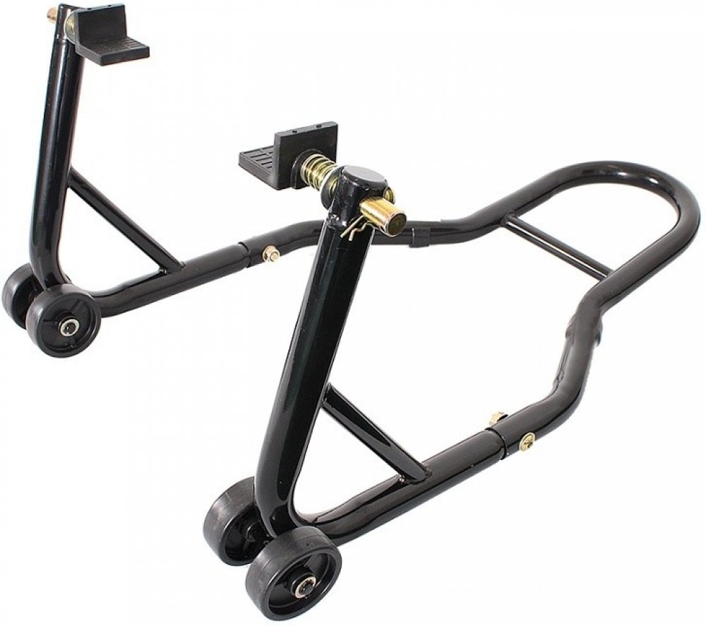 Vyrobený z velmi robustního materiálu pod zadní kolo.Stojan lze jednoduše nastavit na rozdílnou šířku zadní vidlice.Vhodné pro silniční motocykly i pro endura.Pro servis, výměnu kola, mazání řetězu i zimní uskladnění.Nastavitelná šířka od 280mm do 330mm.Rozebíratelný ve všech částech.Maximální nosnost: 160 kg.Barva: černá.Skvělý pomocník - s motocyklem lze po zvednutí jednoduše manipulovat!