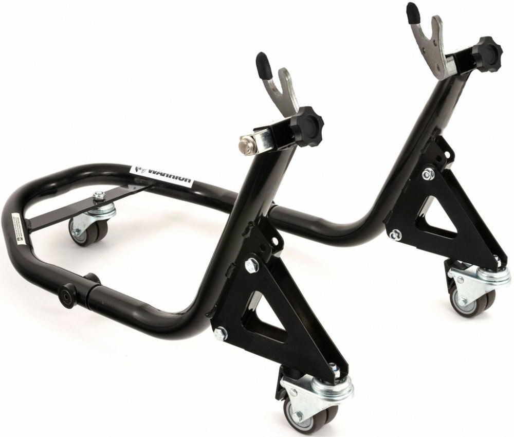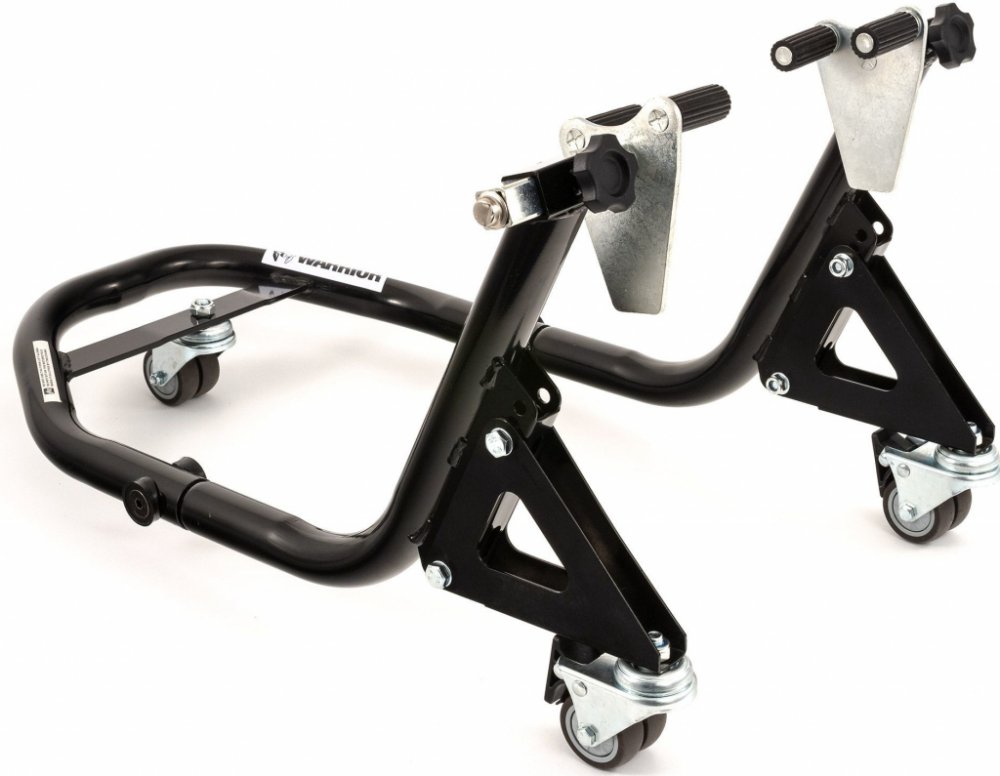 Univerzální motocyklový pohyblivý stojan.Ideální volba pro uskladnění a manipulaci v omezeném prostoru.Snadná pohyblivost díky třem dvojitým kolečkům s brzdou.Pogumované dosedací plochy adaptéru pro dobrou stabilitu.Hmotnost stojanu 6 kg a nosnost 200 kg.Skvělý pomocník - s motocyklem lze po zvednutí jednoduše manipulovat!