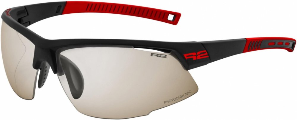 Model R2 RACER v kombinaci černé a červené barvy s matnou povrchovou úpravou je ideální pro sportovce, kteří hledají kombinaci funkčnosti, designu a výkonu. Brýle disponují fotochromatickými čočkami z hnědé do tmavě hnědé barvy s propustností světla 62–16 %, čímž pokrývají kategorie S1–S3. Protiskluzový nastavitelný nosník a straničky zajistí stabilitu při každém pohybu. Navíc jsou kompatibilní s dioptrickými vložkami R2.