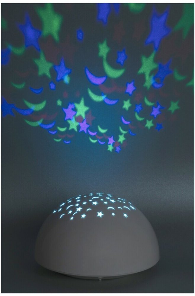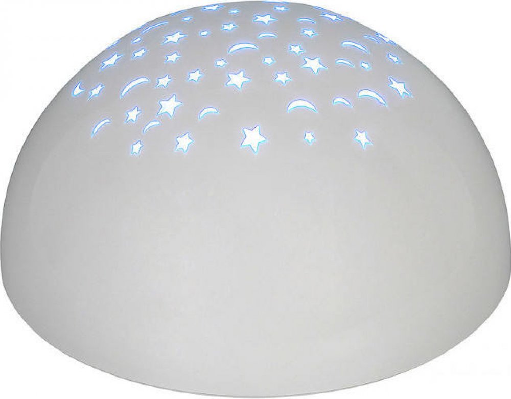Dekorativní světlo Lina jistě zaujme vaše nejmenší barevnými hvězdami a měsíci, ale může také pomoci vašim starším dětem usnout. Tato polokulová, bílá dekorace je vyrobena z plastu a dá se umístit na noční stolek nebo na stůl a ihned můžete vypínačem zapnout krásnou projekci. Samozřejmě, že tento magický trik můžete udělat nejen před spaním, ale i děti samotné rádi experimentují s pokusem promítat světlo na různé povrchy za různých světelných podmínek. Lina má funkční design a vestavěný, energeticky úsporný LED světelný zdroj spotřebuje 0,5 W energie a vyzařuje RGB světlo. Dekorativní světlo má průměr 135 mm a výšku 80 mm.