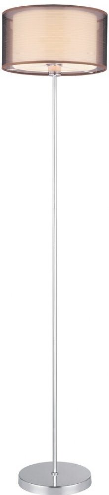 : S vypínačem, Barva: chrom-lesklý / hnědá / bílá, Materiál: kov / textil, Objímka: E 27, Napětí: 230 V, Výkon: 1x60 W, IP krytí: 20, Výška: 1570 mm, Průměr: 350 mm, : Možno osadit úspornou žárovkou