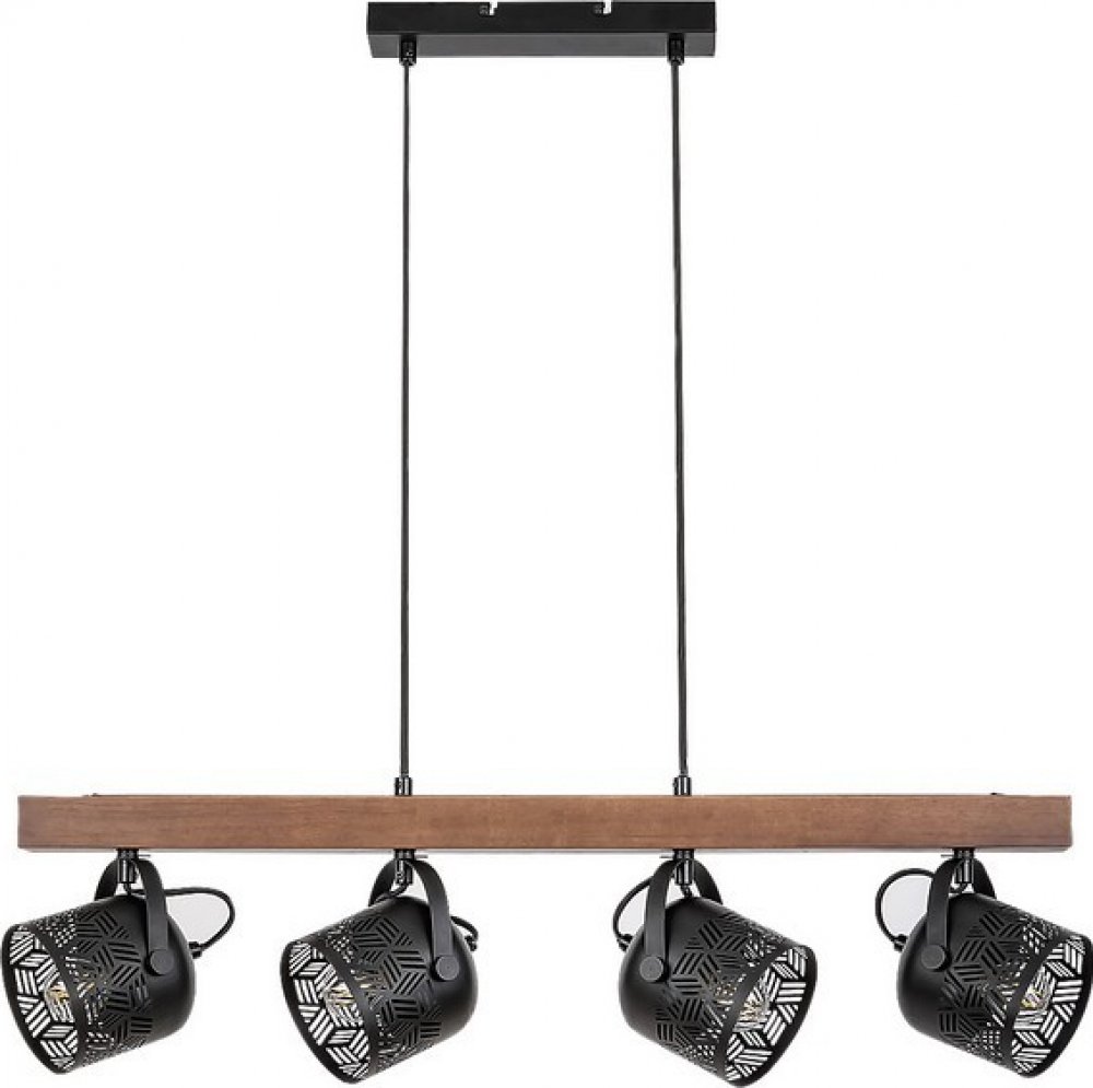Závěsné svítidlo Rotem s 4 žárovkami, které reprezentuje industriální styl, bude charakteristickým kouskem zařízení vašeho moderního domova. Tento model navržený firmou Rabalux je primárně doporučen do vašeho obývacího pokoje, jídelny nebo ložnice, ale můžete jej nainstalovat i do kuchyně. Svítidlo Rotem vyrobeno z kovu a dřeva je doplněno matnými černými stínítky ve tvaru zvonu s charakteristickým vzorem a textilními šňůrkami. Na stěnu jej lze upevnit pomocí podlouhlého čtvercového dekoračního podstavce. Hlavy svítidla jsou umístěny v jedné řadě vedle sebe na vodorovné nosné tyči z ořechového dřeva, která je připevněna k ozdobné základně. Toto svítidlo lze použít se čtyřmi žárovkami o výkonu každé až 40W. Typ patice je E14. Díky flexibilním hlavám svítidla je tento model schopen snadno osvětlit i větší místnost. Rozměry závěsného svítidla se 4 žárovkami jsou následující: šířka 750 mm, průměr každého stínidla je 110 mm, vzdálenost od stropu 1 200 mm. Tento model je dodáván bez světelných zdrojů.