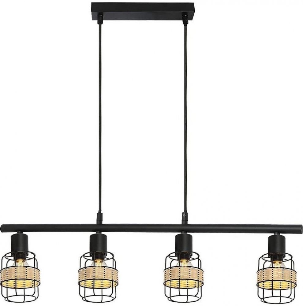Styl: Industriální, Typ: Závěsná svítidla, Technologie LED: ne, Stupeň krytí: IP20, Barva: černá, Materiál: kov, Záruka: 2 roky, Počet světelných zdrojů: 4, Patice: E14, Příkon světelného zdroje: 25 W, Příkon: 100 W, Napětí: 230V, 50Hz, Délka rozety: 240.0 mm, Průměr: 95.0 mm, Délka: 700.0 mm, Výška: 1200 mm, Hmotnost: 1200 g, Stupeň ochrany: I