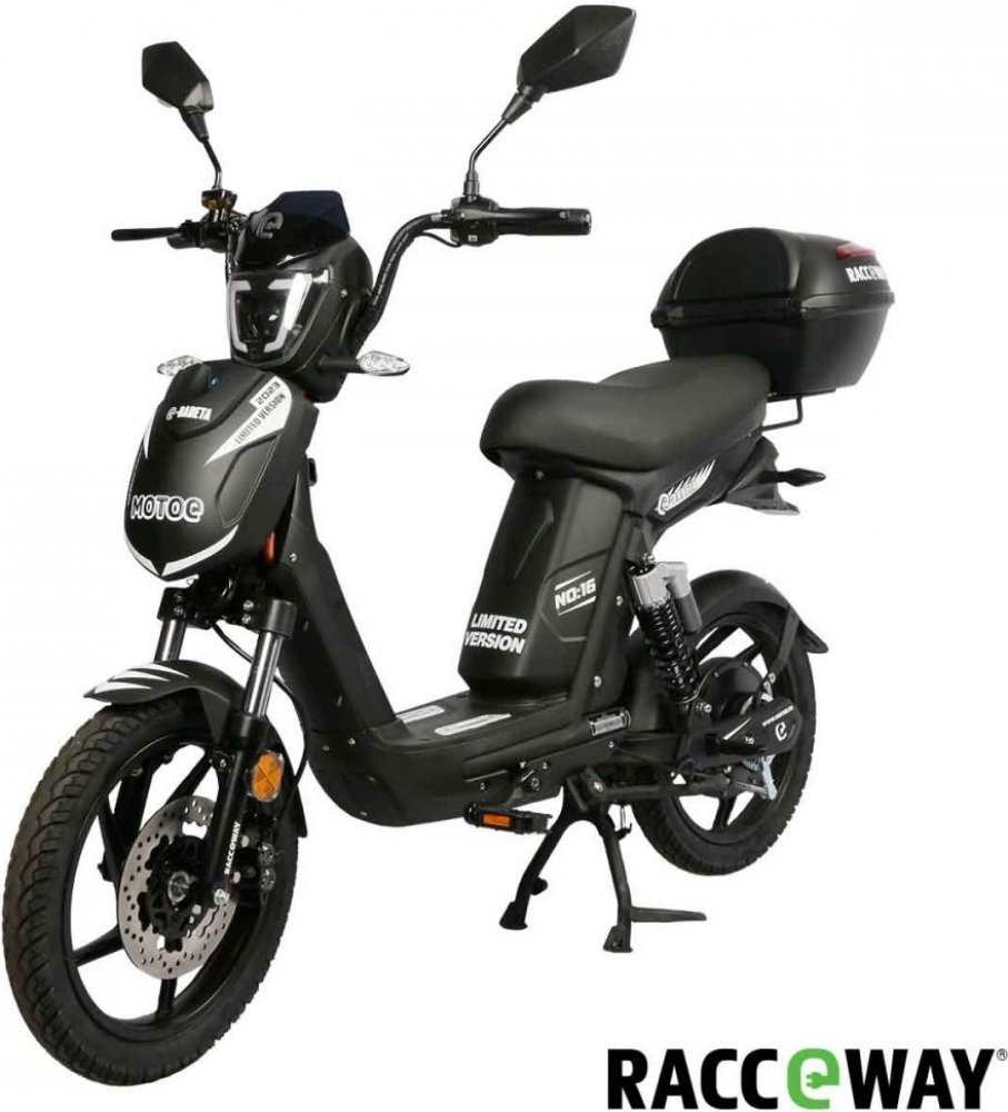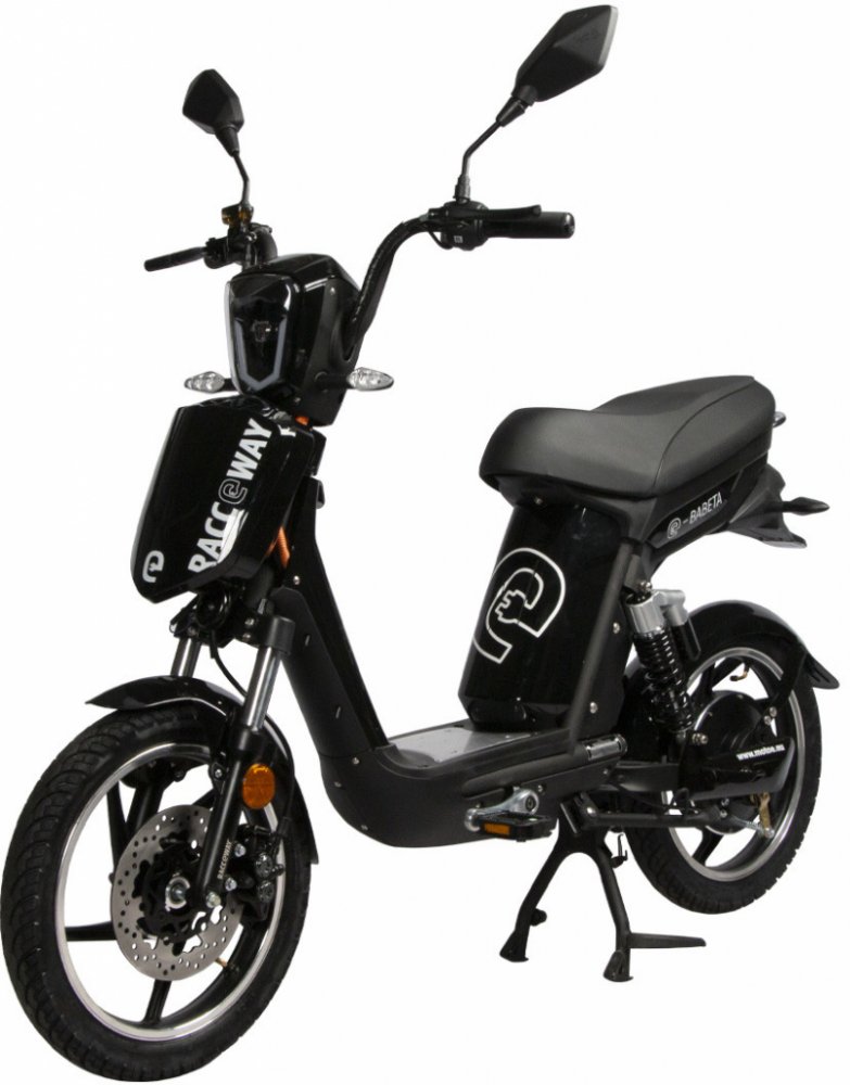 skútr Racceway E-Babeta černé 25 km/h 250W 45 km 12 Ah olověná 48 V 4-6 hod. 810 mm 120 kg 1690 mm