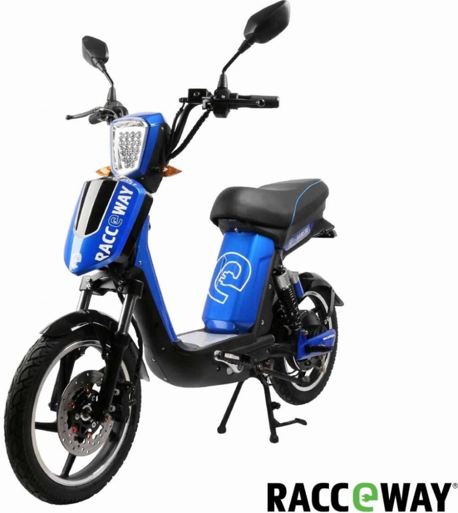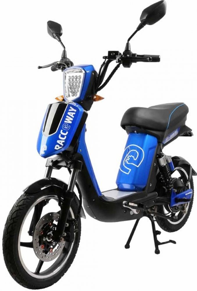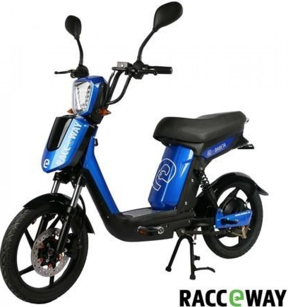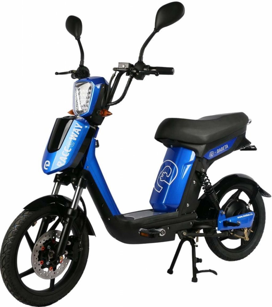 skútr Racceway E-Babeta modré 25 km/h 250W 45 km 12 Ah olověná 48 V 4-6 hod. 810 mm 120 kg 1690 mm