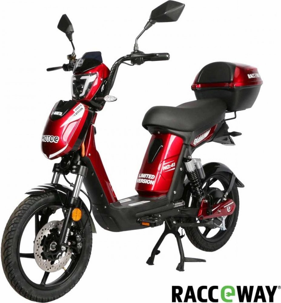 skútr Racceway E-Babeta červené 25 km/h 250W 45 km 12 Ah olověná 48 V 4-6 hod. 810 mm 120 kg 1690 mm