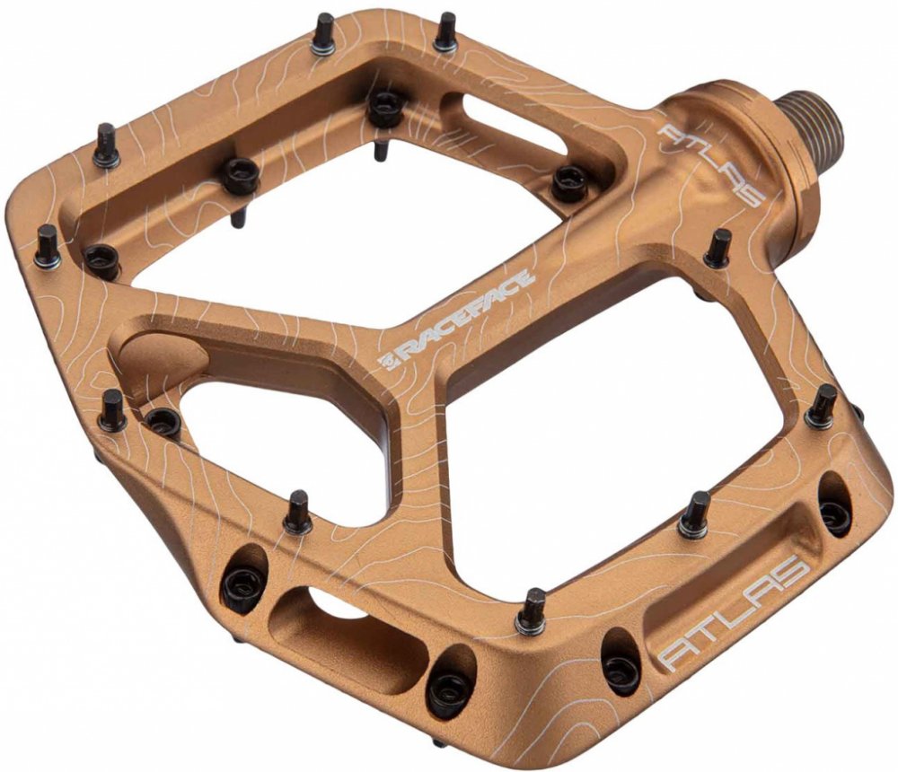 Kompletně přepracované pedály Race Face Atlas - nízkoprofilová, prostorná základna s výraznými hroty a nízká váha, to vše dělá z těchto pedálů ideální záležitost pro trail bike.