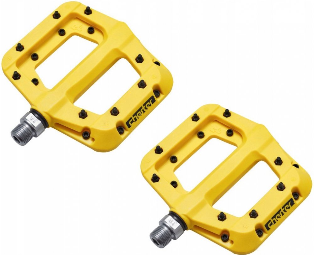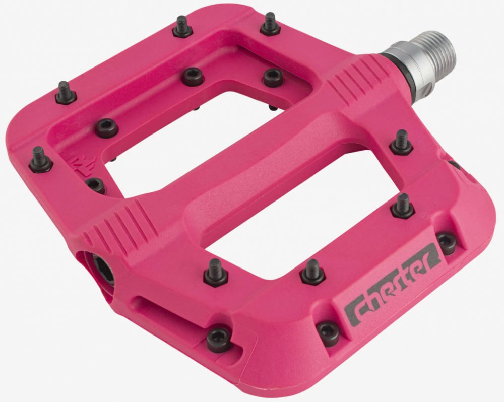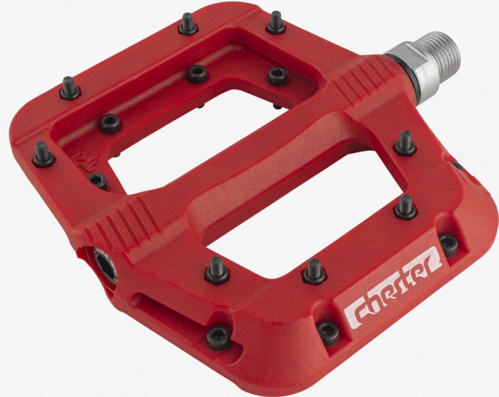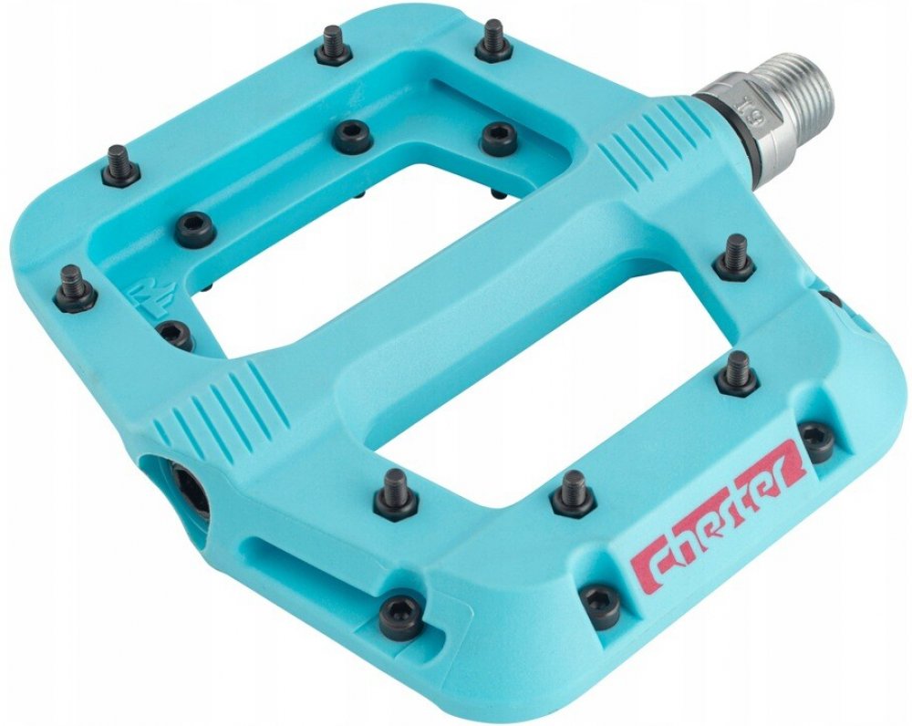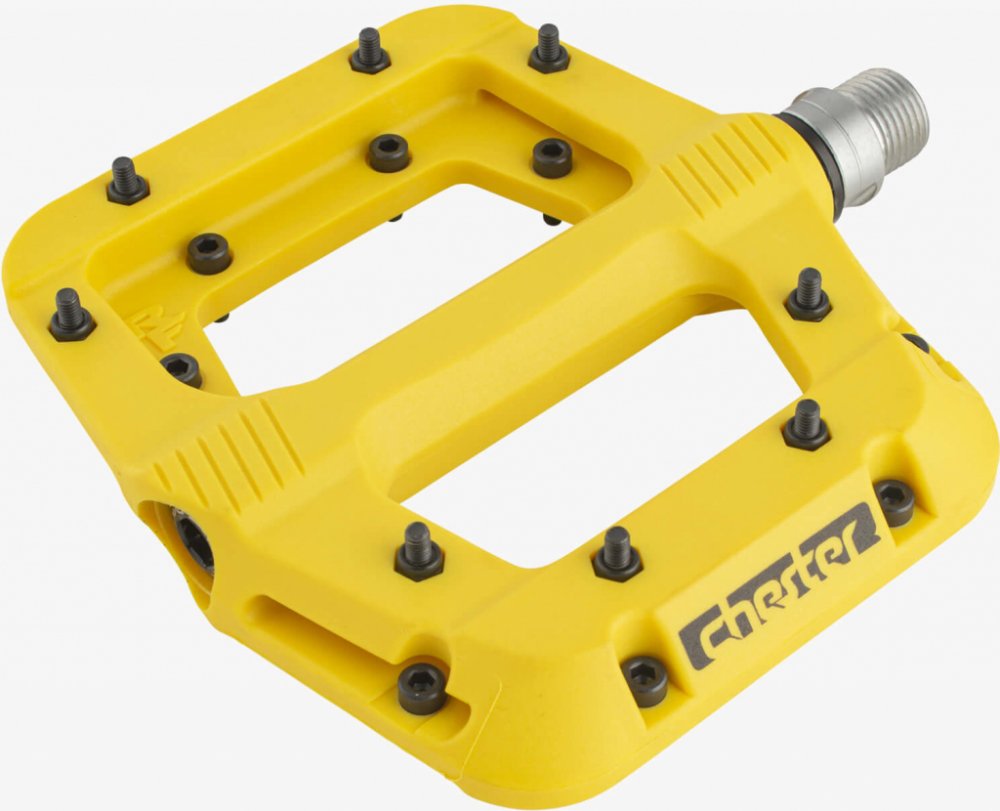 Cenově dostupnější platformové pedály CHESTER od Race Face vhodné na enduro, trail a DH. Nylon-kompozitový materiál pedálů zaručuje nízkou váhu a vysokou odolnost. Kovové piny a kvalitní osy se servisovatelnými ložisky.