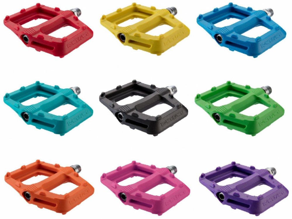 Pedály na kolo Race Face Ride jsou určeny na Trail, DownHill, FreeRide, Dirt Jump. Tyto pedály Race Face jsou vybaveny Cro-Mo osou s klasickým závitem na pedálový klíč. Samozřejmostí jsou tvarované hroty v těle pedálu, které zabrání nežádoucím zraněním holenní kosti a zároveň umožní přilnutí k podrážce.