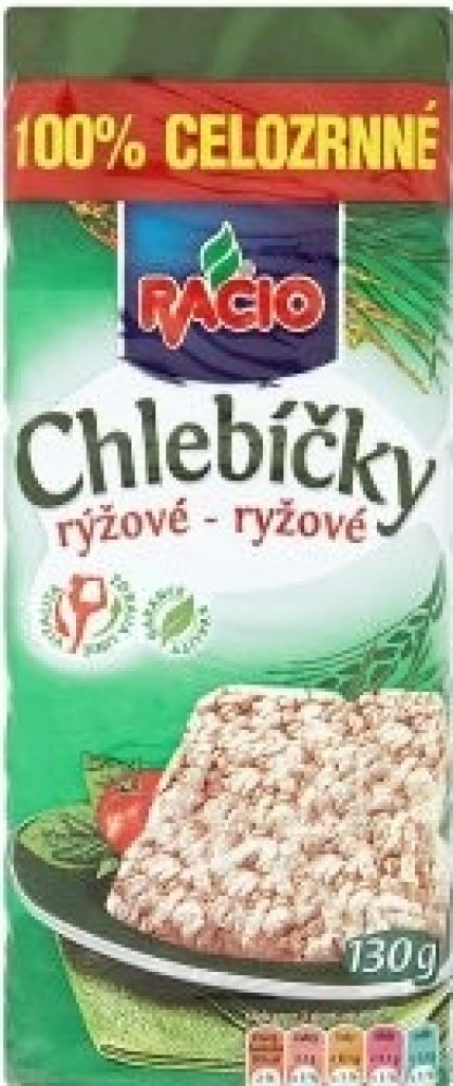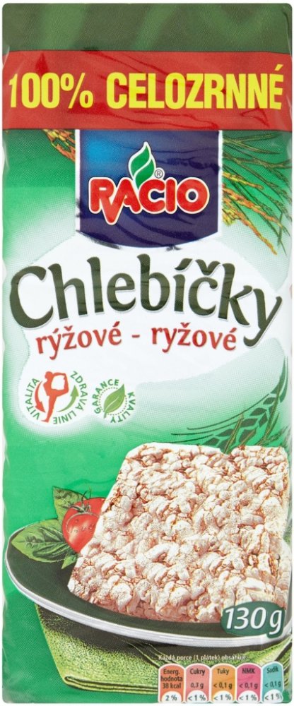 RACIO Chlebíčky rýžové - bezlepkové suchary z pufované rýže RACIO Chlebíčky rýžové jsou suchary z pufované rýže, které jsou skvělou alternativou k běžnému pečivu. Díky složení z rýže jsou přirozeně bezlepkové a tím vhodné i pro celiaky. Jejich použití je stejné, jako například plátek chleba. Můžeš si na ně dát oblíbenou pomazánku, šunku, sýr či zeleninu a vytvořit si tak rychlou a chutnou svačinku. Díky jejich trvanlivosti je můžeš mít schované ve spížce a vytáhnout je kdykoliv budeš potřebovat, případně se skvěle hodí i jako náhrada pečiva, když cestuješ. RACIO Chlebíčky rýžové v bodech: suchary z pufované rýže bezlepková alternativa k běžnému pečivu ve třech různých variantách