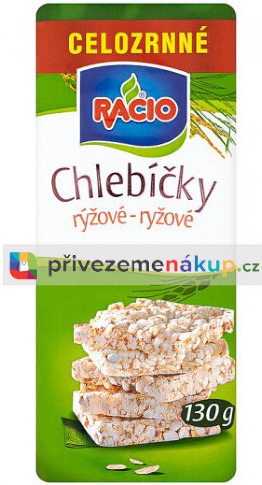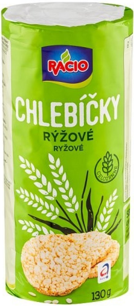 RACIO Chlebíčky rýžové - bezlepkové suchary z pufované rýže RACIO Chlebíčky rýžové jsou suchary z pufované rýže, které jsou skvělou alternativou k běžnému pečivu. Díky složení z rýže jsou přirozeně bezlepkové a tím vhodné i pro celiaky. Jejich použití je stejné, jako například plátek chleba. Můžeš si na ně dát oblíbenou pomazánku, šunku, sýr či zeleninu a vytvořit si tak rychlou a chutnou svačinku...