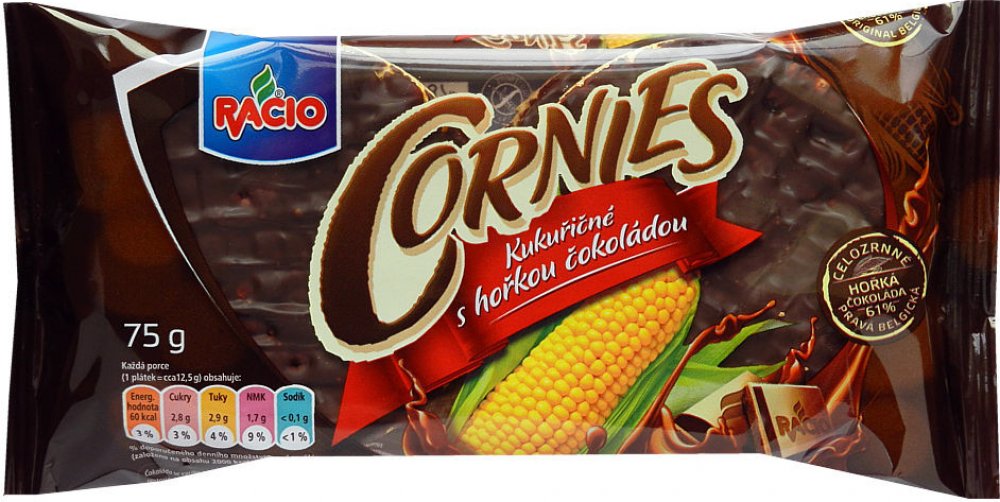 Racio Cornies kukuřičné s hořkou čokoládou 75 g