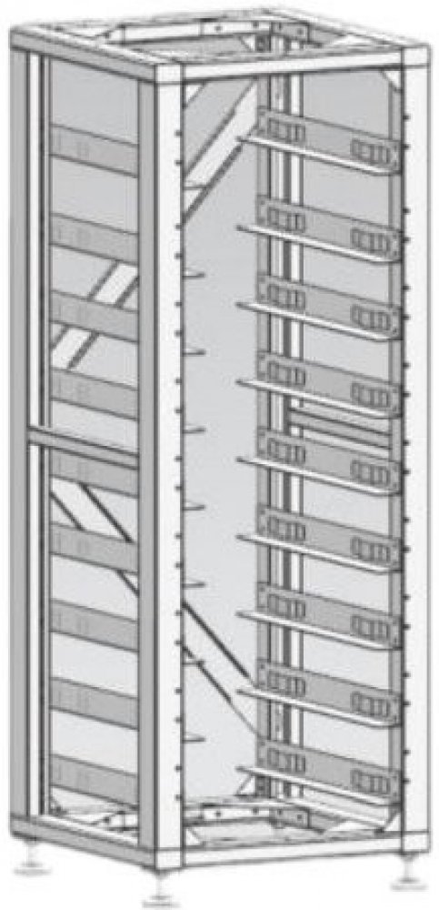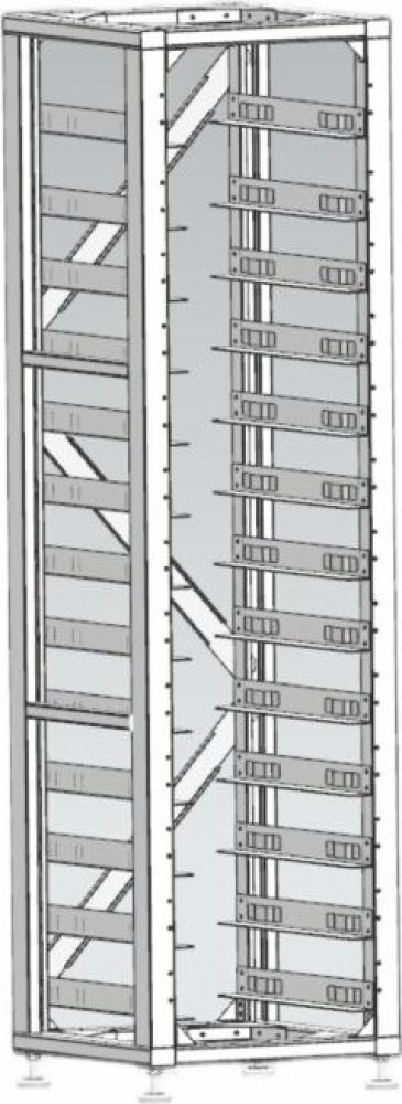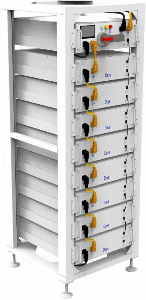 Racková volně stojící skříň o šířce 19", bez dveří a bočnic, od výrobce fotovoltaických systémů firmy DEYE je určená pro uložení vysokonapěťového bateriového clusteru, do kterého lze uložit až 12 baterií BOS-G a 1 BMS s označením HVB750V/100A-EU.