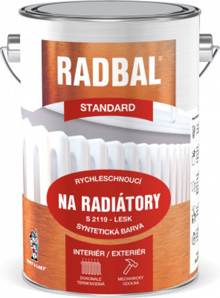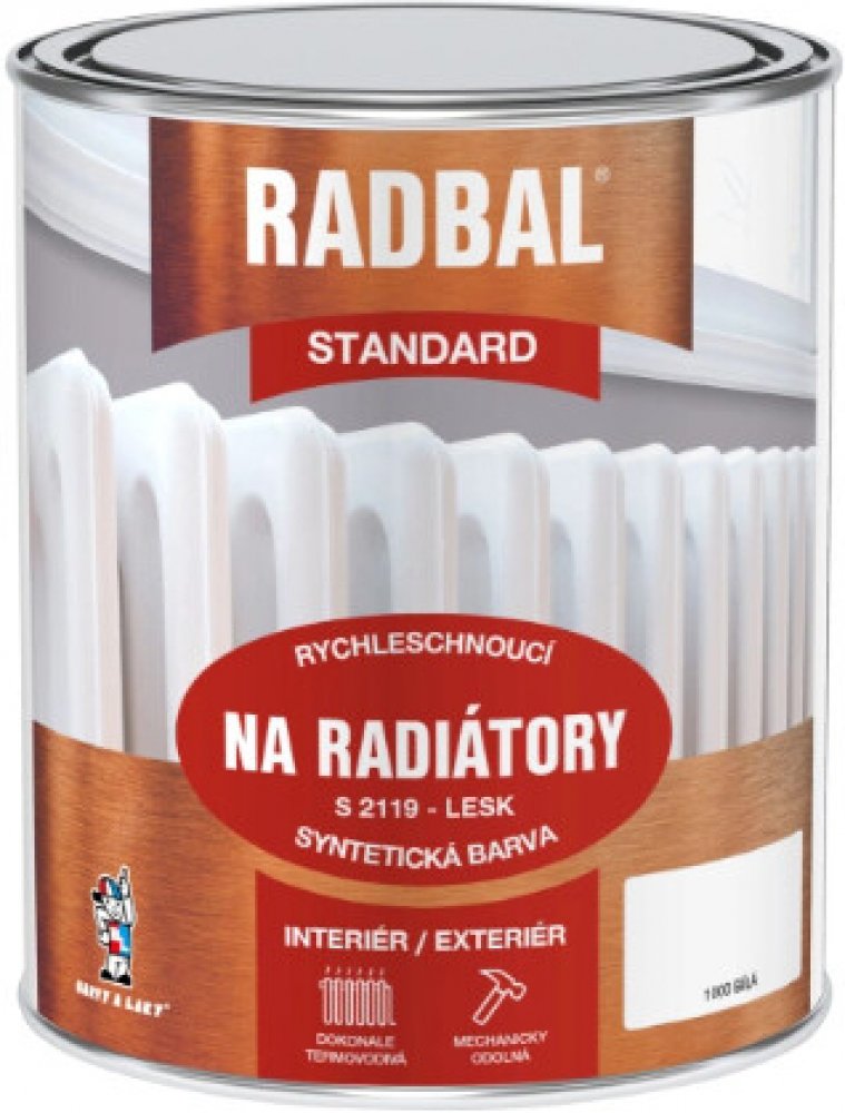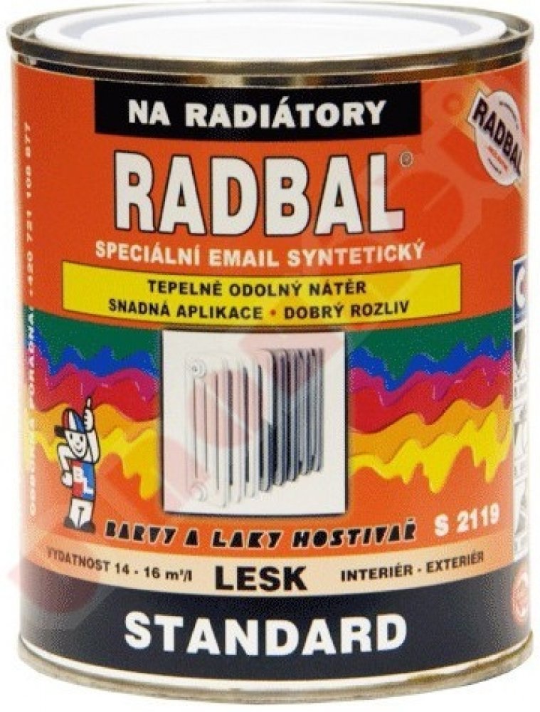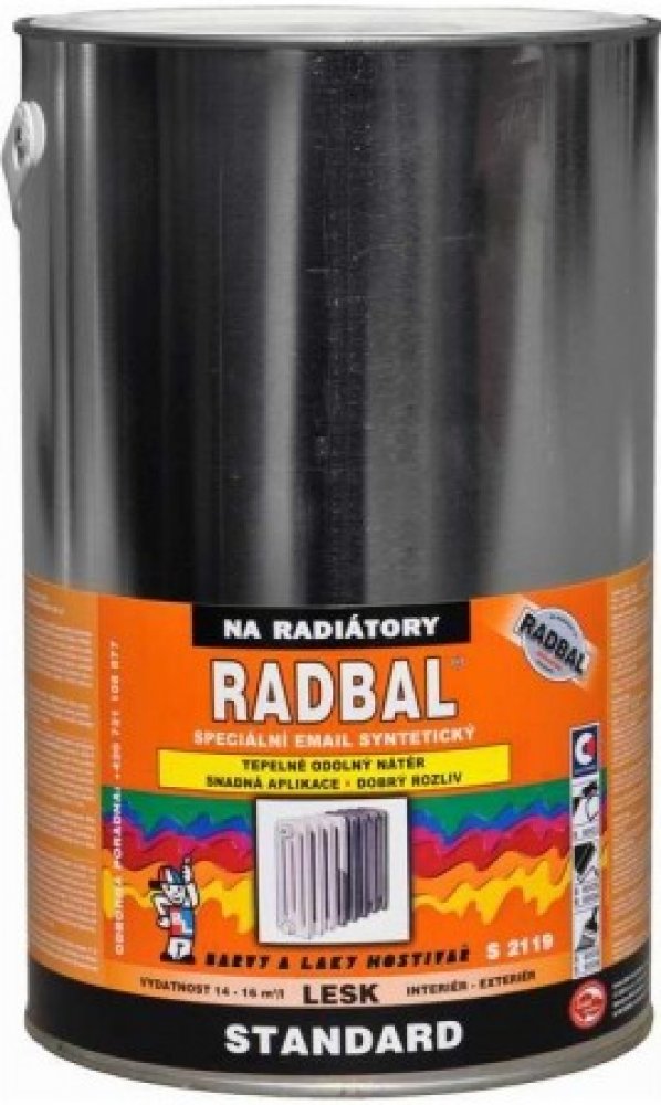 Radbal email je určen zejména k vrchním nátěrům radiátorů teplovodního topení.