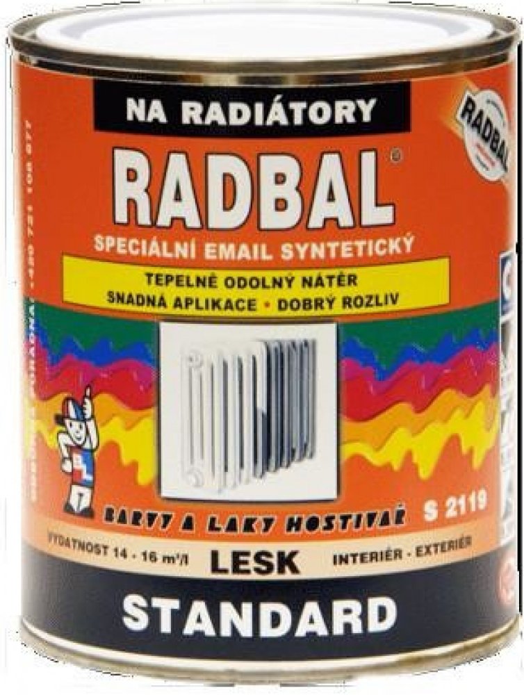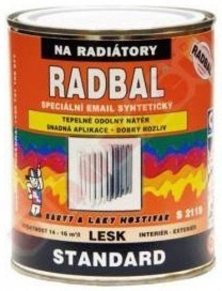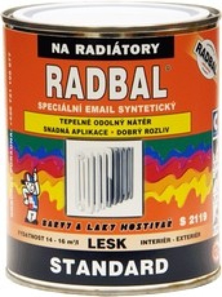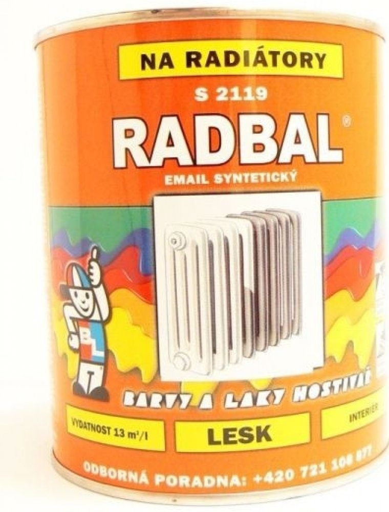 Radbal je disperze anorganických pigmentů v roztoku syntetických pryskyřic v organických rozpouštědlech s přídavkem sušidel.Radbal email je určen zejména k vrchním nátěrům radiátorů teplovodního topení. Má rychlé zasychání a dobré mechanické vlastnosti. Radiátory musí být před aplikací vychladlé.
