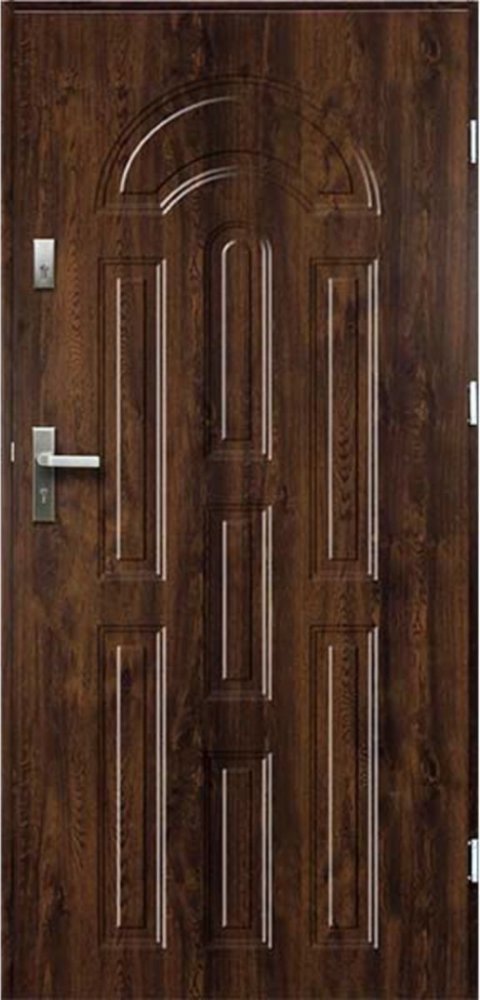 Dveře o tloušťce 55 mm jsou vyrobeny z ocelového plechu potaženého dekorativní fólií odolnou proti UV záření se strukturou a barvou dřeva (případně v barevném provedení).Výplň dveří tvoří deska z pěnového polystyrenu. Dveře jsou vybaveny dvěma nezávislými tříbodovými zámky, třemi nastavitelnými panty a čepy proti vypáčení a vylomení. Mají také těsnění v rámu a prahu.