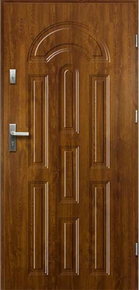 Dveře o tloušťce 55 mm jsou vyrobeny z ocelového plechu potaženého dekorativní fólií odolnou proti UV záření se strukturou a barvou dřeva (případně v barevném provedení).Výplň dveří tvoří deska z pěnového polystyrenu. Dveře jsou vybaveny dvěma nezávislými tříbodovými zámky, třemi nastavitelnými panty a čepy proti vypáčení a vylomení. Mají také těsnění v rámu a prahu.