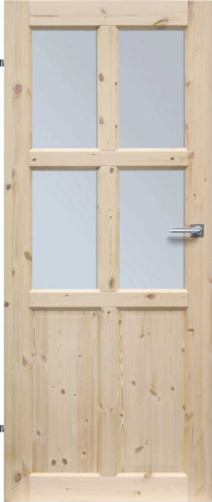 Falcové interiérové dveře RADEX BERGEN jsou vyrobeny z lepeného masivního dřeva skandinávské borovice se suky. Dveře nemají žádnou povrchovou úpravu, jsou tedy dodávány v surovém stavu a tak vhodné k povrchové úpravě lakováním nebo malováním. V prosklené variantě jsou dveře opatřeny 4 mm mléčným tvrzeným sklem. Standardní vybavení Falcové interiérové dveře RADEX BERGEN jsou dodávány se 3 čepovými závěsy (panty) ve stříbrné barvě a dozickým zámkem (rozteč zámku 72 mm). Zárubeň a dveřní kování není součástí dodávky a je nutno je zakoupit zvlášť. Dveře jsou vhodné pro rozetové kování a štítkové kování s roztečí 72 mm. Upozorňujeme že, obrázek je pouze ilustrativní. Vzhledem k povaze použitého přírodního materiálu (dřeva) se mohou dveře mírně lišit od produktové fotografie.