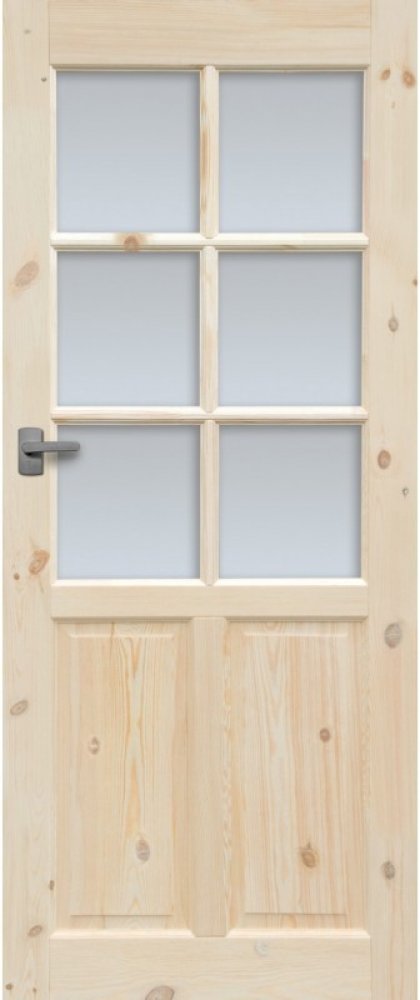Dřevěné interiérové dveře Radex jsou výjimečné nejen svým vzhledem, ale také velmi příznivou cenou. Dveře Radex z této série jsou vyrobeny z lepeného masivního borovicového dřeva. Rámy dveří jsou vyrobeny z konstrukčně stálé masivní lepené borovicové desky se suky. Výplně rámů - kazety -jsou z borovicové lepené masivní sukaté desky.
