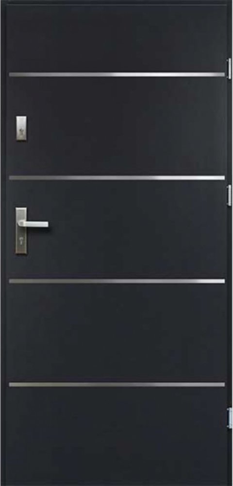 Dveře o tloušťce 55 mm jsou vyrobeny z ocelového plechu potaženého dekorativní fólií odolnou proti UV záření se strukturou a barvou dřeva (případně v barevném provedení).Výplň dveří tvoří deska z pěnového polystyrenu. Dveře jsou vybaveny dvěma nezávislými tříbodovými zámky, třemi nastavitelnými panty a čepy proti vypáčení a vylomení. Mají také těsnění v rámu a prahu.