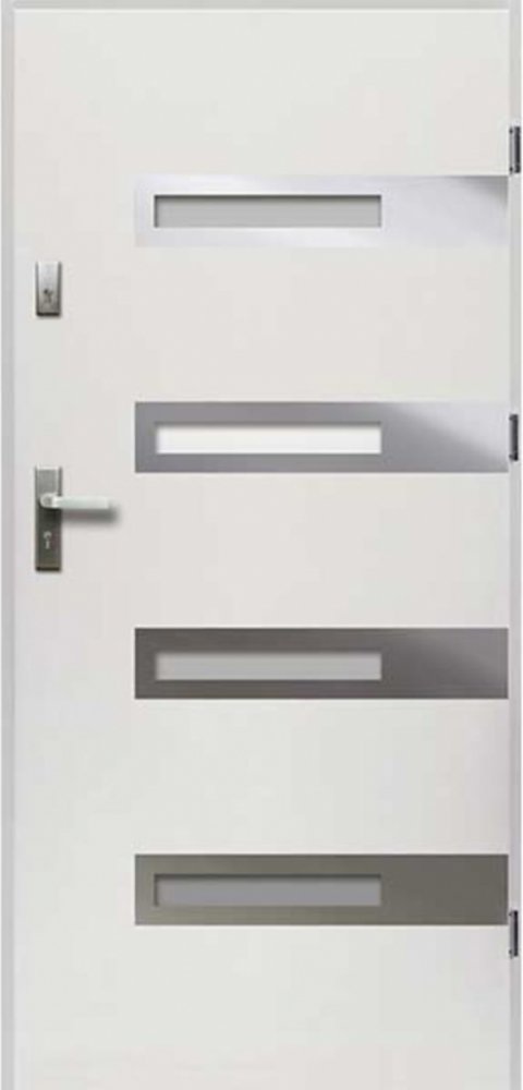 Dveře o tloušťce 55 mm jsou vyrobeny z ocelového plechu potaženého dekorativní fólií odolnou proti UV záření se strukturou a barvou dřeva (případně v barevném provedení).Výplň dveří tvoří deska z pěnového polystyrenu. Dveře jsou vybaveny dvěma nezávislými tříbodovými zámky, třemi nastavitelnými panty a čepy proti vypáčení a vylomení. Mají také těsnění v rámu a prahu.