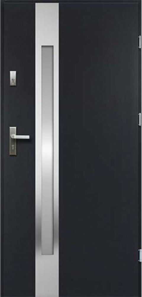 Dveře o tloušťce 55 mm jsou vyrobeny z ocelového plechu potaženého dekorativní fólií odolnou proti UV záření se strukturou a barvou dřeva (případně v barevném provedení).Výplň dveří tvoří deska z pěnového polystyrenu. Dveře jsou vybaveny dvěma nezávislými tříbodovými zámky, třemi nastavitelnými panty a čepy proti vypáčení a vylomení. Mají také těsnění v rámu a prahu.