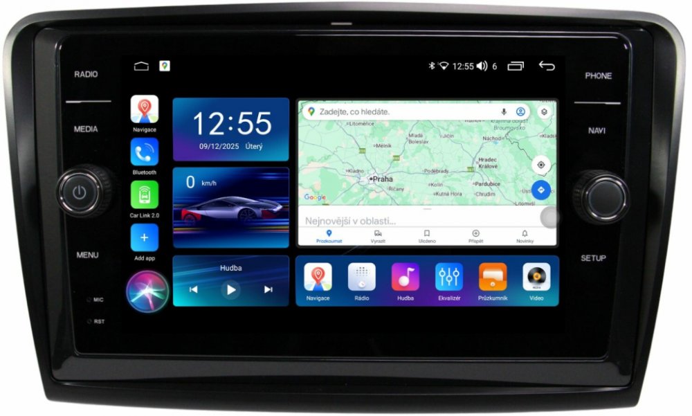 Autorádio je vybaveno operačním systémem Android 15, který přináší moderní rozhraní, vysokou stabilitu a široké možnosti přizpůsobení. Stejně jako u chytrých telefonů můžete instalovat aplikace z Obchodu Play, využívat internetový prohlížeč, e-mail, sociální sítě, YouTube, Spotify nebo jiné oblíbené služby. Díky systému Android lze autorádio plně personalizovat – nastavit si vlastní tapetu, rozložení ikon, notifikace i hlasové ovládání. Celé prostředí je navrženo pro rychlou, intuitivní a plynulou práci, čímž se z autorádia stává plnohodnotné multimediální centrum s funkcemi, které znáte z vašeho mobilního telefonu.