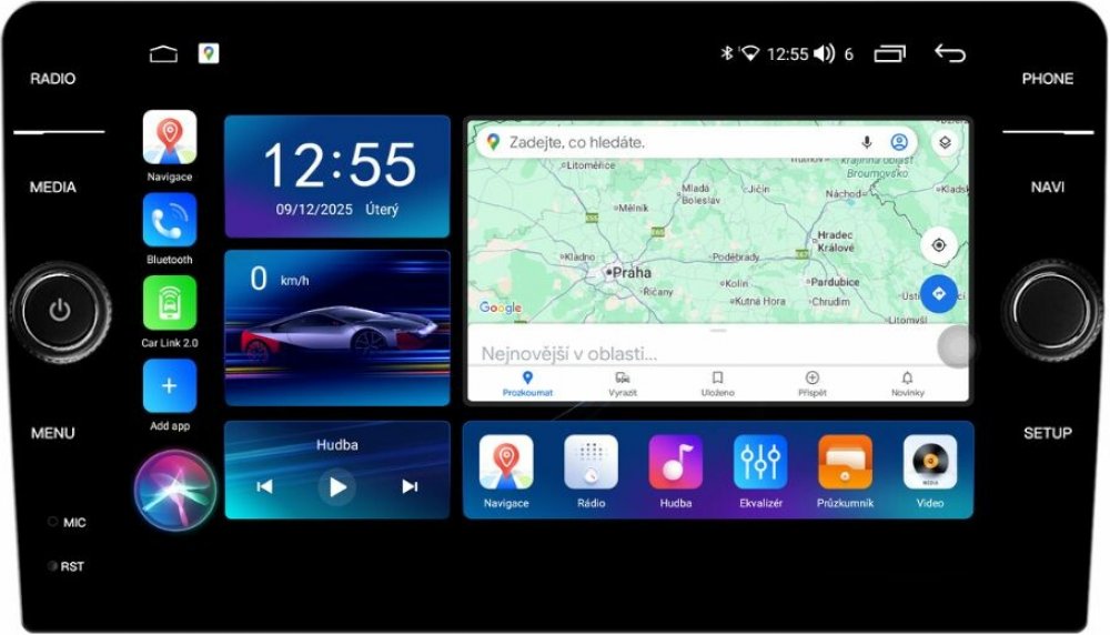 Autorádio je vybaveno operačním systémem Android 15, který přináší moderní rozhraní, vysokou stabilitu a široké možnosti přizpůsobení. Stejně jako u chytrých telefonů můžete instalovat aplikace z Obchodu Play, využívat internetový prohlížeč, e-mail, sociální sítě, YouTube, Spotify nebo jiné oblíbené služby. Díky systému Android lze autorádio plně personalizovat – nastavit si vlastní tapetu, rozložení ikon, notifikace i hlasové ovládání. Celé prostředí je navrženo pro rychlou, intuitivní a plynulou práci, čímž se z autorádia stává plnohodnotné multimediální centrum s funkcemi, které znáte z vašeho mobilního telefonu.