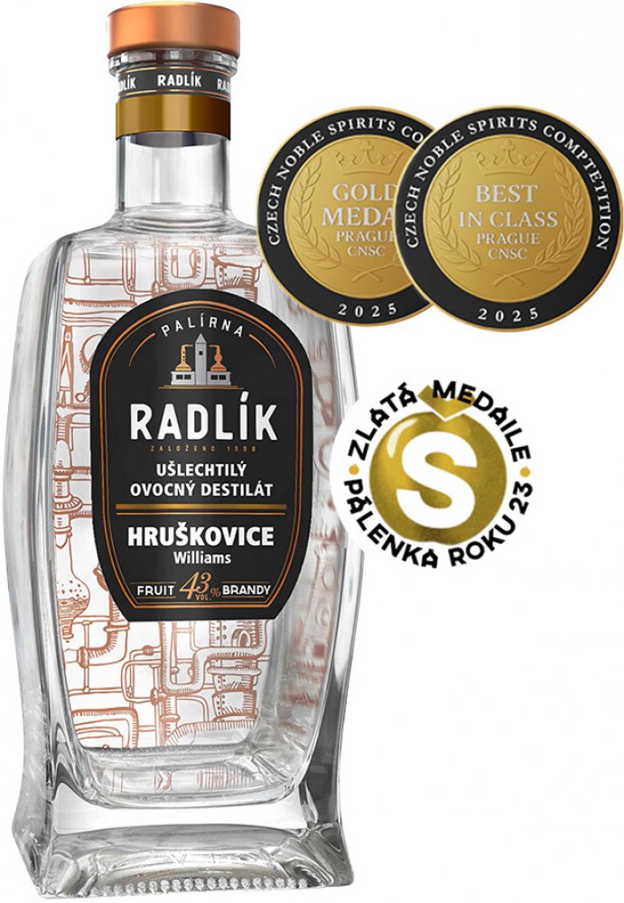 Královnou mezi hruškovicemi je bezesporu Williamska. Její vůně je svěže opojná a chuť připomíná hruškový kompot. Pro zachování těchto vlastností je zapotřebí kvašení při nízké teplotě a citlivá destilace. Tato šarže byla pro ještě větší jemnost kompletně odstopkována.Česká Palírna Radlík, se pyšní svými destiláty ze švestek, hrušek, ale třeba i vína, jeřabin a bezinek. Jejich úspěch spočívá v jednoduchém receptu: destiláty jsou čistě přírodní, nepřidává se do nich žádný líh ani cukr. Každý litr jejich destilátu pochází až z osmnácti kilogramů kvalitního ovoce. Autentická chuť ovoce je vždy na prvním místě. Hruškovice Williams z Palírny Radlík získala v soutěži o Pálenku roku v konkurenci 37 českých palíren se 296 soutěžními vzorky nejvyšší bodové ohodnocení napříč všemi kategoriemi (ovocné destiláty, whisky, giny a likéry). Stala se tak absolutním vítězem soutěže neboli Pálenkou roku 2023.
