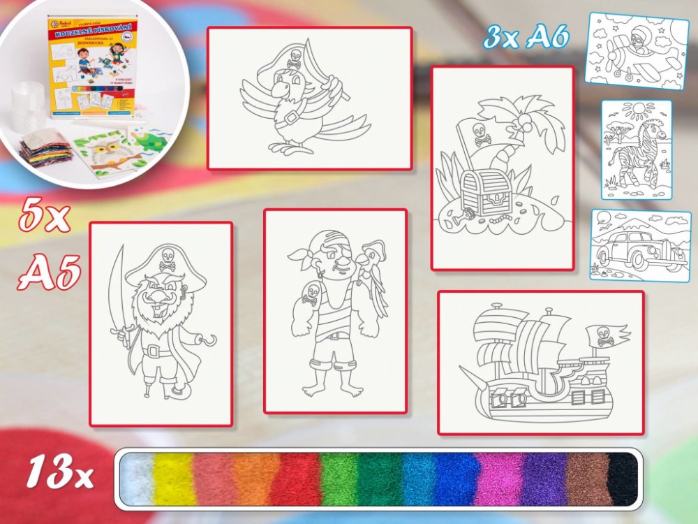 Radost v písku Sada střední PIRÁTI Barevné pískování obrázků