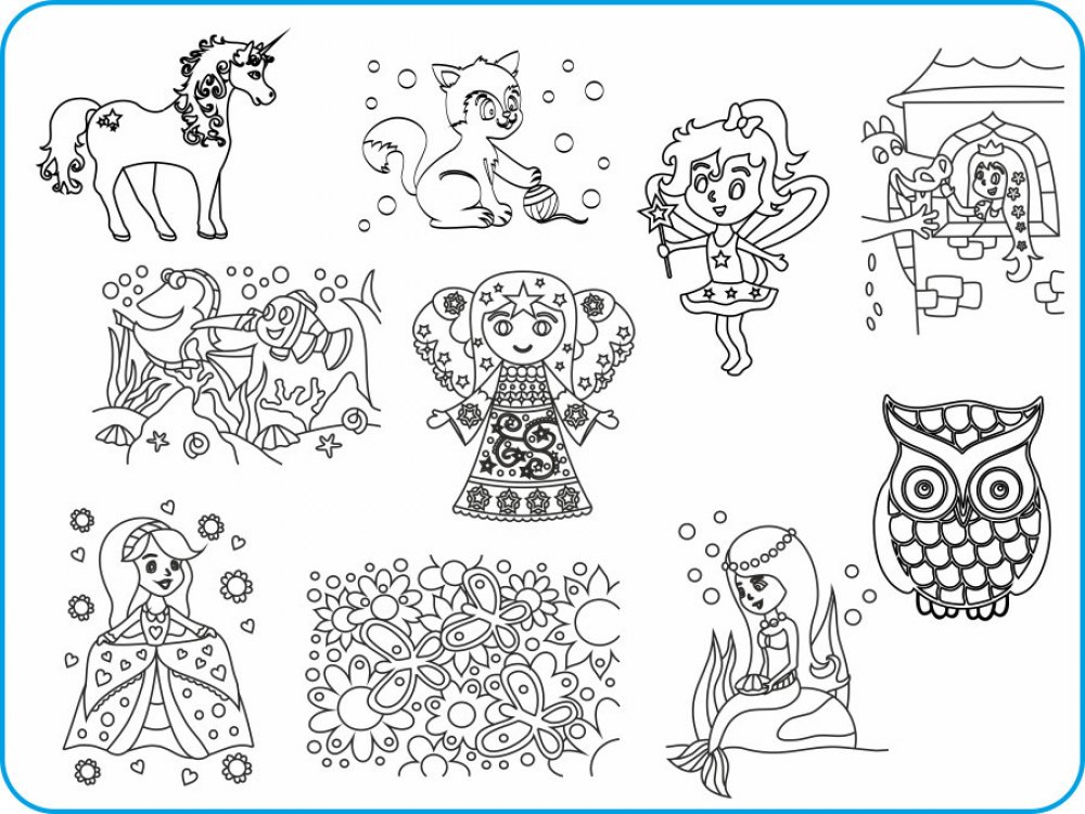 Šablony, dostatek barevného písku (cca pro 20-25 šablon), obaly na šablony, pomůcky a návod pro pískování. Složení obrázků můžete vidět na úvodní fotografii. Šablony jsou vhodně namíchané podle našich zkušeností z kreativní dílničky a vašich nejoblíbenějších obrázků.