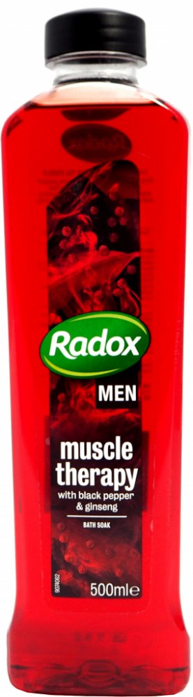 Radox Men Muscle Therapy pěna do koupele s černým pepřem má zklidňující a regenerační účinky, pomáhá zachovat pokožku hebkou a vláčnou. Výtažky ženšenu pomáhají odbourávat stres a černý pepř dokonale prohřeje unavené tělo. Pociťte novou energii díky čisté vitalitě černého pepře a povzbuzujícího ženšenu. Hřejivý účinek posílí, osvěží a povzbudí unavené svaly. Zažijte pocit znovuzrození. Dodává pokožce příjemnou mužnou vůni.