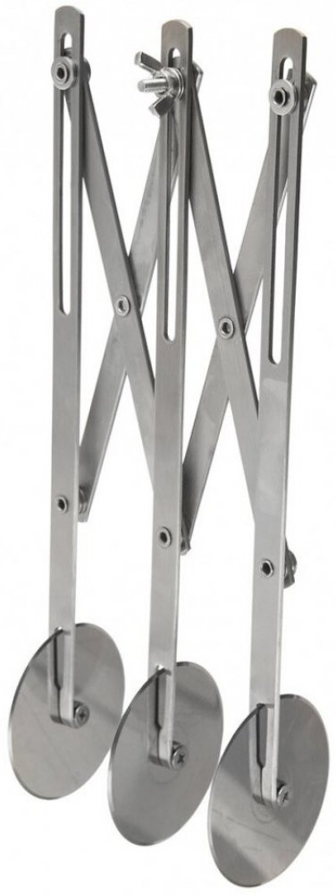 Nastavitelné cukrářské trojřadé rádélko, chcete-li rádýlko či rádlo, slouží ke krájení nebo značení těsta na stejné proužky nebo čtverce a je vyrobené z nerezové oceli. Několika tahy tak nakrájíte vyválené těsto pro přípravu ovocných knedlíků, tvarohových koláčků nebo slaných tyčinek z listového těsta.