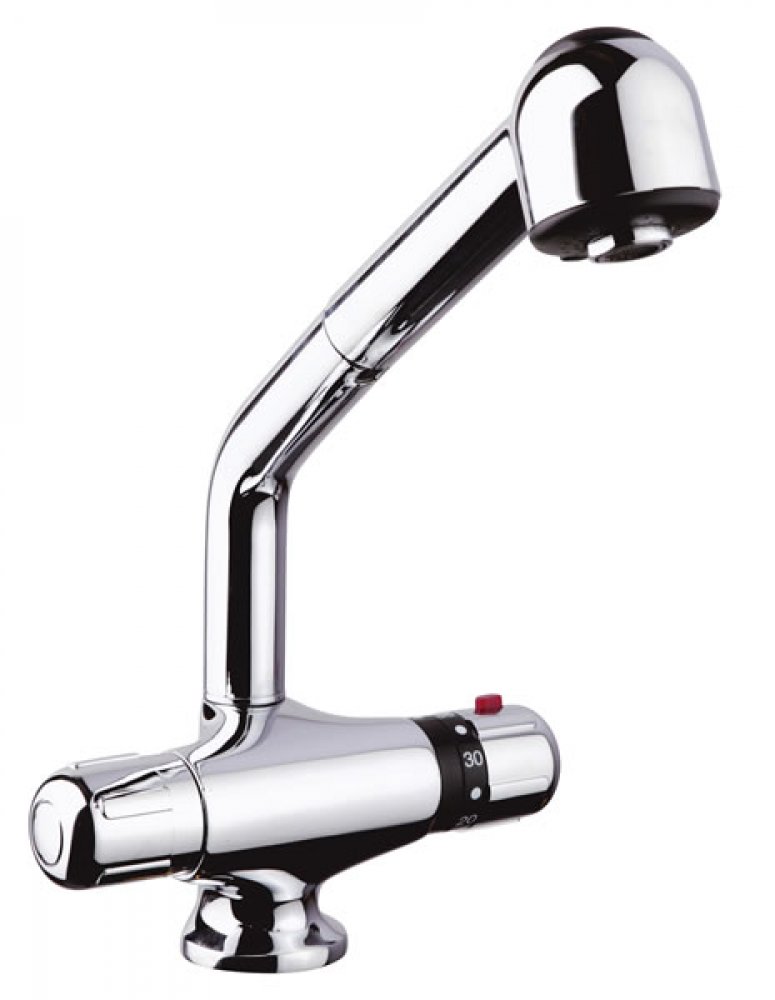 Raf Termostatická Dřezová stojánková baterie s vytahovací sprchou, chrom - T5010
