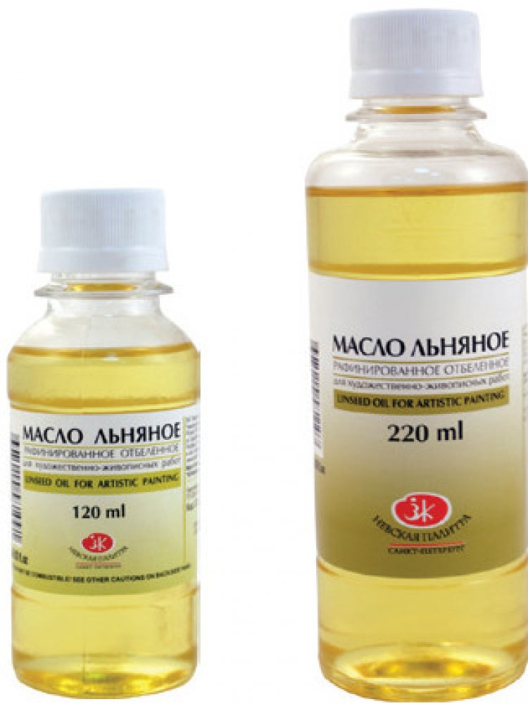 Rafinovaný lněný olej / různé objemyRafinovaný lněný olej St. Petersburg se používá při olejomalbě na ředění olejových barev. Výroba čištěného lněného oleje je velmi náročná a prošla několika etapami: olej byl sušený, bělený a následně rafinovaný.Výhody: dokonalá roztíratelnost transparentnost barev po rozředení s lněným olejem zpomalení schnutí nanesené barevné vrstvy Balení: 120 ml v plastové lahvi 220 ml v plastové lahvi